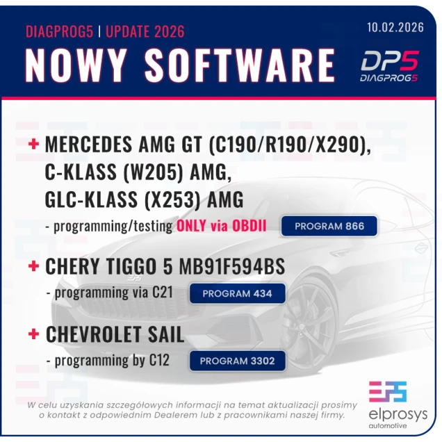 - Mercedes AMG GT (C190/R190/X290), C-klass (W205) AMG, GLC-KLASS (X253) AMG - programming/testing ONLY via OBDII - Program nr. 866.