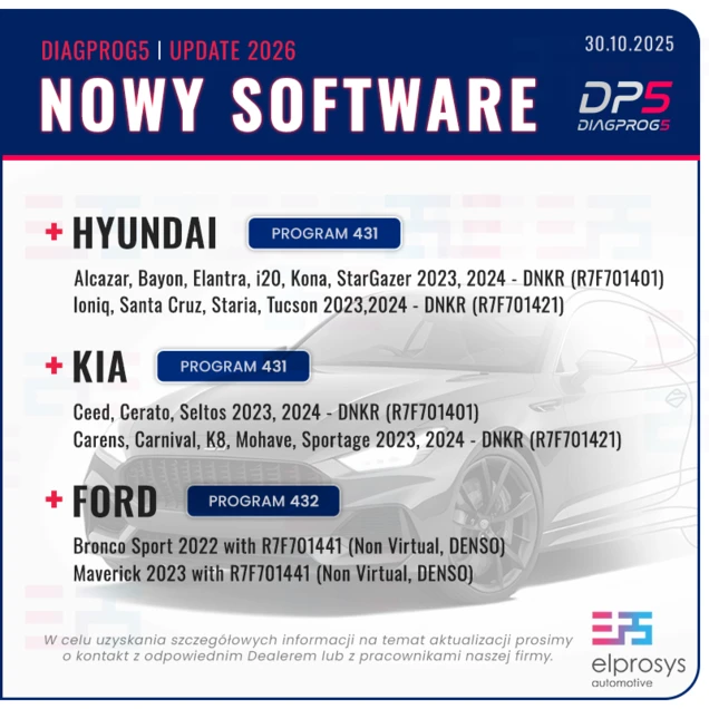 • Kia Carens, Carnival, K8, Mohave, Sportage 2023,2024 - DNKR (R7F701421)- programming by C23 - Program nr. 431.