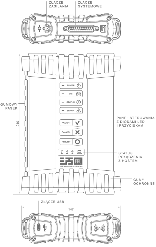 ELP5 PRO – VCI to zaawansowany interfejs umożliwiający komunikację diagnostycznego systemu komputerowego lub systemu DiagProg5 z pojazdem